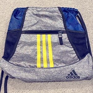 This Adidas backpack combines a sleek gray and blue color scheme with a practical drawstring closure, making it ideal for gym sessions or daily use. The lightweight design ensures comfort, while the iconic Adidas branding adds a touch of sporty style.