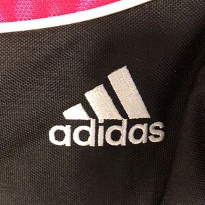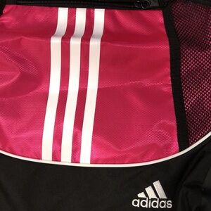 Adidas drawstring bag, used only once very much like new! No wear and tear inside of bag is still like new! Has two side netted pockets for water bottles or other essentials and a front zipper which works just like new! The adidas logo is also stitched!