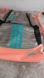 Stylish drawstring bag with pink and gray tones. Features blue stripes and mesh pockets.