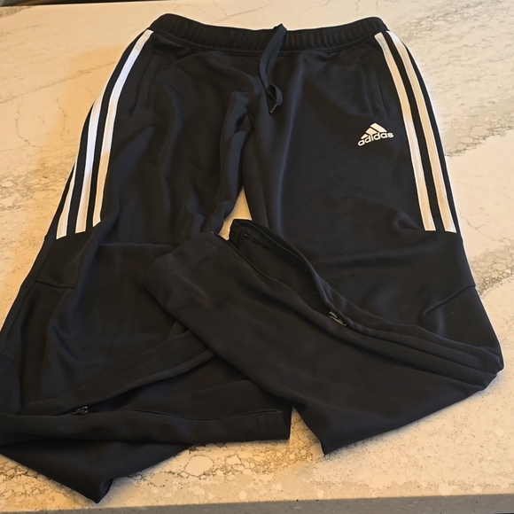 Black, drawstring Adidas athletic pants. Zip up release on both legs. Size small. Great condition. Smoke free home.