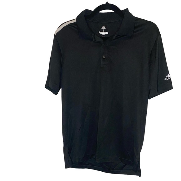 Adidas Dri Fit Moisture Wicking Three Stripe Black White Mens Short Sleeve Polo