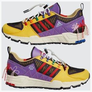 Wherever the day takes you, these adidas shoes equip you for the journey. Originally released in '93 as part of our iconic EQT line for runners, the retro silhouette is reimagined through the creative vision of Sean Wotherspoon. The designer's love of the outdoors shines through the use of mesh and CORDURA materials and the rugged rubber sole. Add to that bright floral embroideries and the extra bag of lace beads that you can use to customize your look, and you're set to stand out. Made in part with recycled content generated from production waste, e.