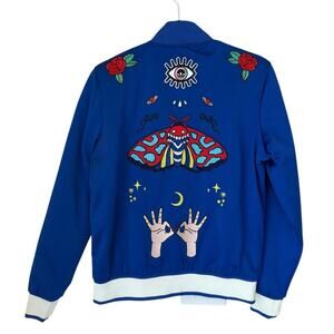 Adidas Embellished Arts Bomber Jacket Women's XS Blue Snap Embroidered