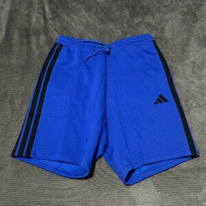 New and unworn Adidas Essential 3 Stripe Shorts. Mens size L Royal Blue and Black