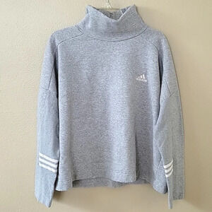 Adidas Essentials Comfort Gray White Funnel Neck Sweatshirt - Size Large
