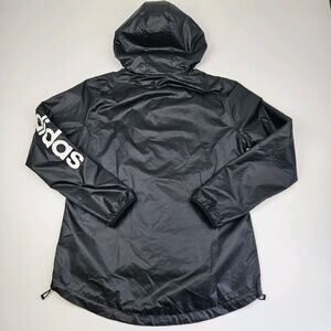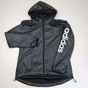 Adidas Essentials Linear Windbreaker Women M Full Zip Spell Out Black Mesh Lined