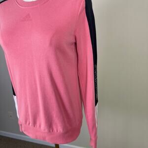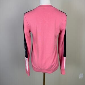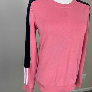 The Adidas Colorblock Sweatshirt offers athletic style with its bold color blocking and iconic logo detailing. This pink and black crewneck features long sleeves and a comfortable XS fit, perfect for workouts or casual streetwear. The stretch fabric and sporty design provide both mobility and urban appeal, making it ideal for gym sessions, weekend wear, or adding contemporary sportswear flair to your everyday wardrobe.