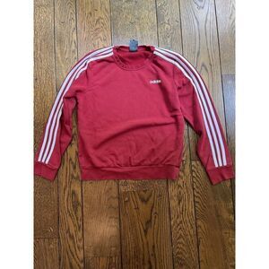 Adidas Essentials Women's Size Medium Red 3 Stripe Sweatshirt Pullover