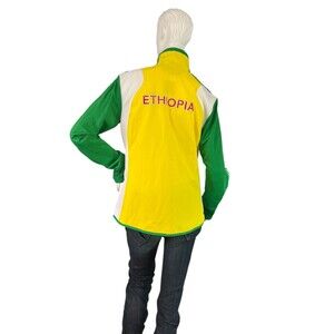 This is an Adidas Ethiopia yellow and green colorblock track and field jacket, women's US size medium, Italian size 44, UK size 12 and Japanese size large. Excellent like new condition. Measurements;