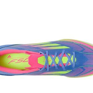 Adidas F50 League Turf Soccer Cleats - Soccer Shoes : Blue Fusion/Lucid Lemon/Lucid Pink : Control + accuracy = confidence. When the goal's in your sights, target perfection with adidas F50 League Turf sneakers. The synthetic upper on these soccer cleats includes high-definition texture across its strike zone. A mixture of debossed elements and raised print, it's there to help you nail every pass and shot. Underneath, a specialist outsole keeps you in boss mode on turf. ; Textile lining and cushioned insole. ; Lace-up closure. ; Regular fit. ; Signature three-stripe design on the sides. ; Low-top design. ; Round toes. ; Rubber outsole. ; Imported. Measurements: ; Weight: 10 oz ; Product measurements were taken using size Men's 6, Women's 7, width Medium. Please note that measurements may vary by size. | adidas F50 League Turf Soccer Cleats Soccer Shoes Blue Fusion/Lucid Lemon/Lucid Pink : Men's 11.5 - Women's 12.5 Medium, Synthetic.