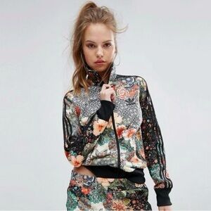 Adidas Originals FARM Rio Jardim Agharta Trefoil Track Jacket, Size XS / Legging Size Small. Black / Multicolor.