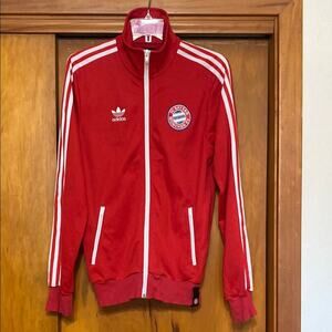 Adidas FC Bayern Munchen German Red Track Jacket White Stripes Football Soccer