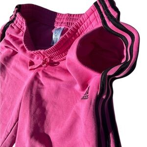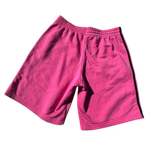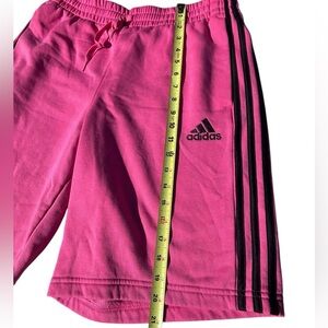Experience comfort and style with these Adidas athletic shorts in vibrant pink. Featuring the iconic three-stripe design on the sides, these shorts are perfect for any workout. The elastic waistband with a drawstring ensures a secure fit, making them ideal for active wear.
