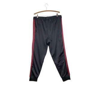 Adidas Mens Size XL Black With Red Three Stripe Fleece Lined Jogger Pants