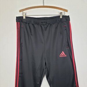Adidas Fleece-Lined Jogger Pants Black Red Three Stripe Pull On Mens Size XL