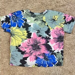Adidas Floral Crop Top Loose Fit T Shirt Colorful Girls Size Large 14 Hibiscus