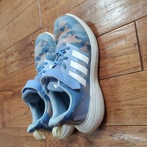 Stylish and comfortable, these Adidas sneakers feature a trendy blue camo design. Perfect for active play and everyday wear.