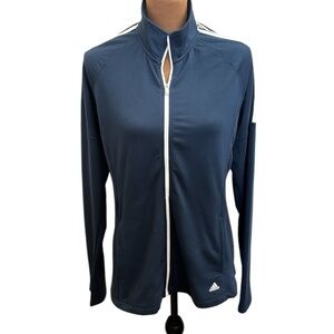 Adidas French Terry Full Zip Blue White Stripe Golf Jacket Size L NWT