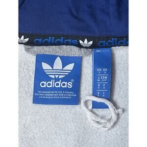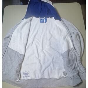 The product is a men's Adidas full zip hoodie in size small, featuring a grey color with a green logo on the front and blue embroidery on the back. This hoodie offers a comfortable and stylish activewear option for men, with the brand logo serving as a trendy accent. Perfect for casual wear or working out, this hoodie is a versatile and on-trend addition to any wardrobe.