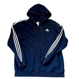 Adidas Full Zip Hoodie Sweatshirt Track Jacket Navy Blue 3 Stripes #GK9053 2XLT