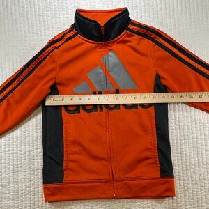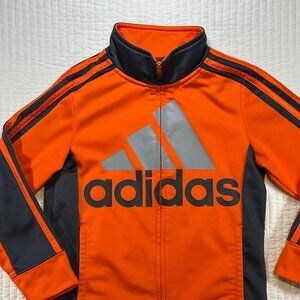Adidas Full Zip Warm Up Soccer Track Jacket Orange Dark Stripe Boys Size 7 Sporty and stylish boys’ Adidas track jacket in bright orange with bold black 3-stripe detail down the sleeves. Designed for comfort and performance, this jacket is perfect for soccer practice, warm-ups, or casual everyday wear. Brand: Adidas Color: Orange with dark stripes Size: Boys 7 Full zip front Long sleeves Side pockets Lightweight, athletic fit Condition: See pictures for wear and small mark on sleeve ⚽ A must-have for young athletes or Adidas fans!