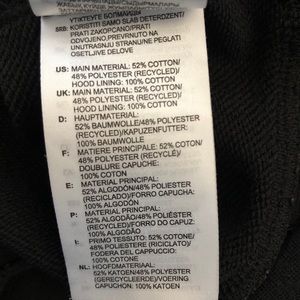 Good condition, no visible flaws. Missing the drawstring of the hoodie.