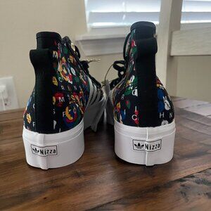 Adidas Nizza Platform Mid x Rich Mnisi Pop-Art Roses, colorful sneakers, very beautiful, it matches and can be used with any casual, modern style of clothing. Its multicolor design is an art, black, they are new, you can see their original label, but it has its details like dirt on the insole, you can see well in the photos, it does not have a box.