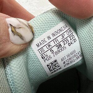 Adidas Galaxy 5 Cloudfoam Running Shoes Mint Green and White Women's Size 6.5. Make every mile count. One mile, two miles or five, these adidas running shoes make each step a good one. Your feet practically sink into the plush cushioning. It feels like you could run forever, or at least take another lap. And maybe another after that. Pre-owned, normal wear. There's light dirt staining on the front of the shoes and heels, please see images.
