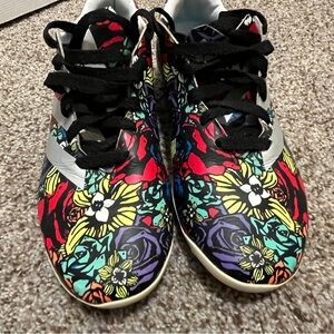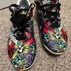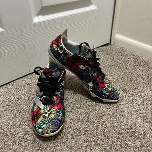 Step into the spotlight with these adidas athletic shoes, featuring a striking red and blue color scheme. Designed for both performance and style, these shoes boast a bold, eye-catching pattern that covers the entire upper, making them a standout choice for any athletic endeavor. With their traditional athletic silhouette and comfortable fit, these shoes are perfect for those who want to make a statement while staying active.