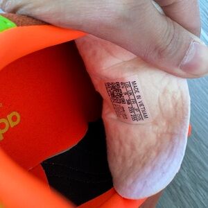 Adidas Gazelle Bold sneakers in solar orange and green.