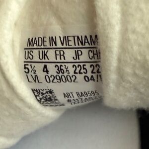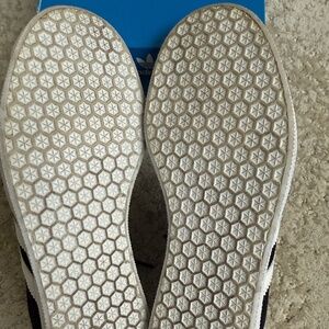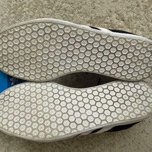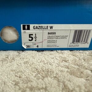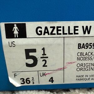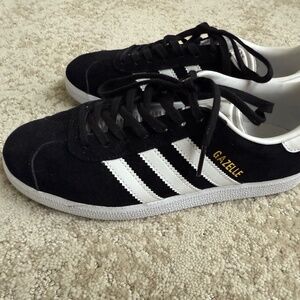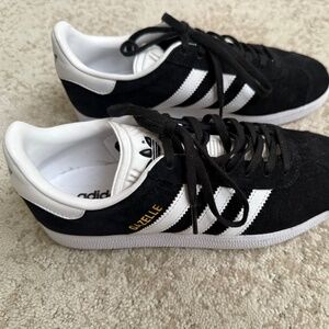 Adidas Gazelle Black & White suede. These gorgeous suede shoes are a beautiful pair but were just a little too tight for me. I wore them once for a quick trip to the grocery store and realized it in the ice cream aisle! The listed size is a US 5.5 UK 4. (Note - please check photo for sizing). Please know your size. I love them and will be ordering another pair!