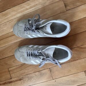 Adidas Gazelle grey suede 7 1/2 white stripes and bottoms