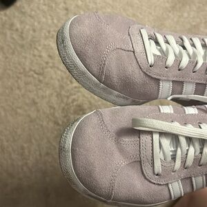 Taupe/pinkish suede sneakers. Lightly worn. Neutral color. Goes with anything. Comfortable.