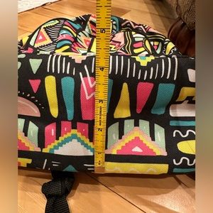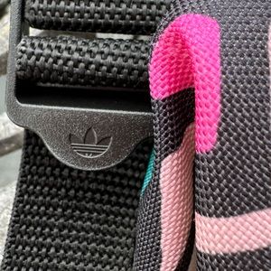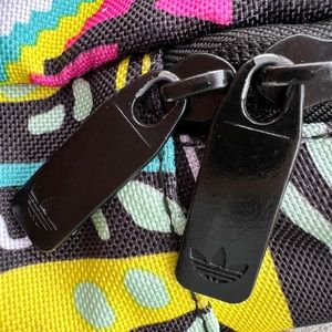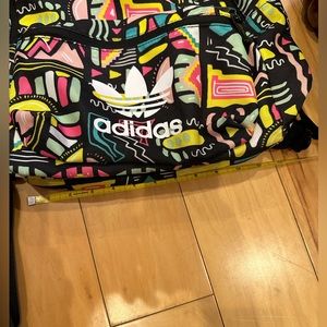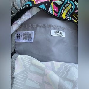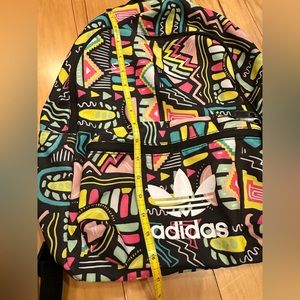 Adidas geometric backpack ( bright yellow , pink, turquoise mint green, black & white) outside zipper pocket , zipper closure, adjustable straps, logo on front & zippers, fun & stylish with a retro vibe! gently used , good condition