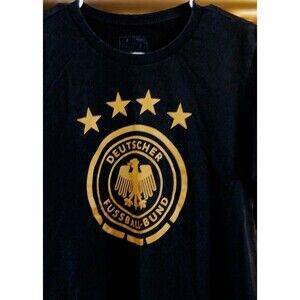 Rare Adidas Germany National Team tee in black with gold crest & 4 stars. Size Small, mens fit. Soft cotton, lightweight, and in excellent pre-owned condition. Perfect for soccer fans, collectors, or streetwear vibes.