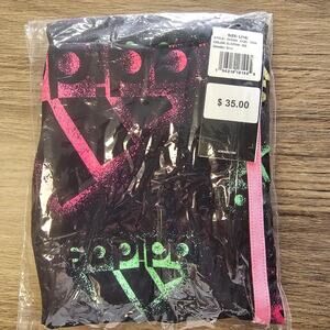 Adidas Girl's All Over Scatter Logo Leggings Size L (14) Black Pink NWT