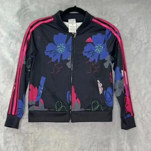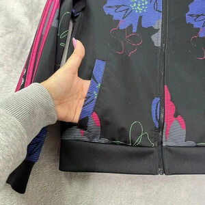 Adidas Girls Black Floral Printed 3-Striped Zip Up Tricot Jacket AP4532 Sz L 14
