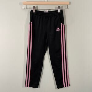 Adidas Girl's Black & Pink 3 Striped Straight Leg Sweatpants Size 6