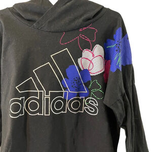 Adidas Girls Hoodie Medium 10 12 Floral Graphic Logo Pattern Pullover Athletic