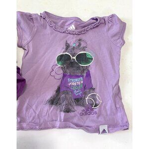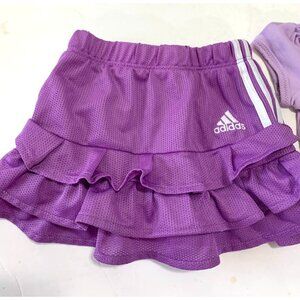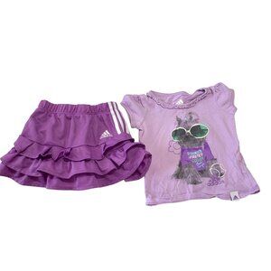 Adidas Girls Infant Baby Sz 12 Months 2 Piece Set outfit Purple Tiered Skirt Skort Tshirt Purple Short Sleeve Ruffle Trim Dog Sunglasses Tenniscore Tennis Preppy Polyester Bottom