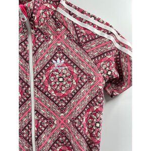 Adidas Girls L Pink Pattern Dress Full Zip Short Sleeve Sporty Track Tennis Logo