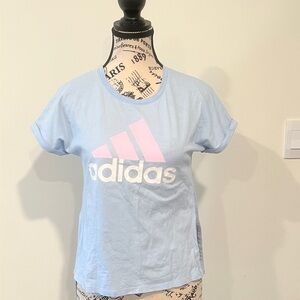 Adidas Girl's Light Blue T-Shirt with Pink Logo, XL (16)
