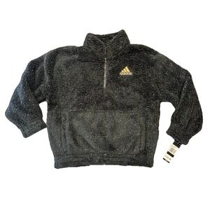 Adidas Girls Long Sleeve Mock Neck Furry Lurex Pullover Sweatshirt Size 14 BLACK