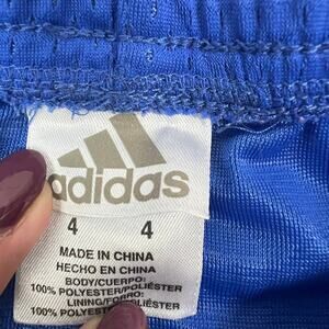 Sporty Adidas shorts in size 4, perfect for your active girl. These shorts feature a vibrant blue mesh body with eye-catching pink side panels adorned with classic Adidas stripes. An elastic waistband ensures a snug and comfortable fit, making them ideal for sports, playdates, or casual wear. The lightweight construction of these shorts provides breathability and freedom of movement, keeping her cool and comfortable all day long.