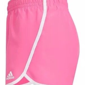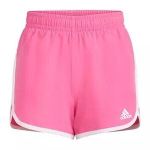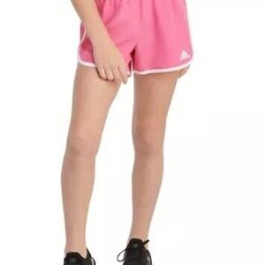 Adidas Girl's Pink Athletic Running Shorts White Trim Regular Fit Size L NEW