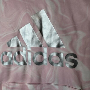 Adidas Girls Pink Tye Dye Pullover Hooded Sweatshirt Silver Logo Size M 10/12