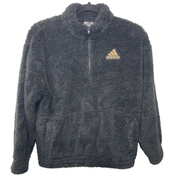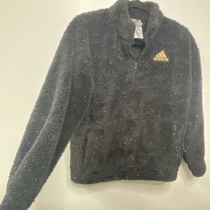 Adidas Girls Sweatshirt XL 16 Black Gold Sparkle Mock Neck Sherpa Fuzzy 1/4 Zip