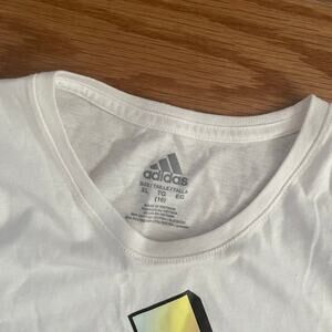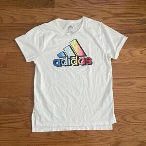 Adidas Girls XL T-Shirt White Rainbow Performance Logo