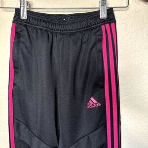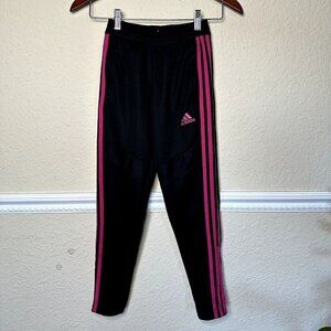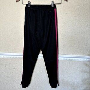Adidas Girls Youth Large Black Pint Stripes Track Pants Zip Ankle Pockets Barbie