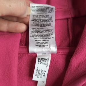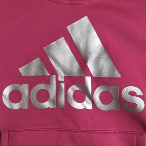 Pink sweat shirt with silver Adidas emblem.